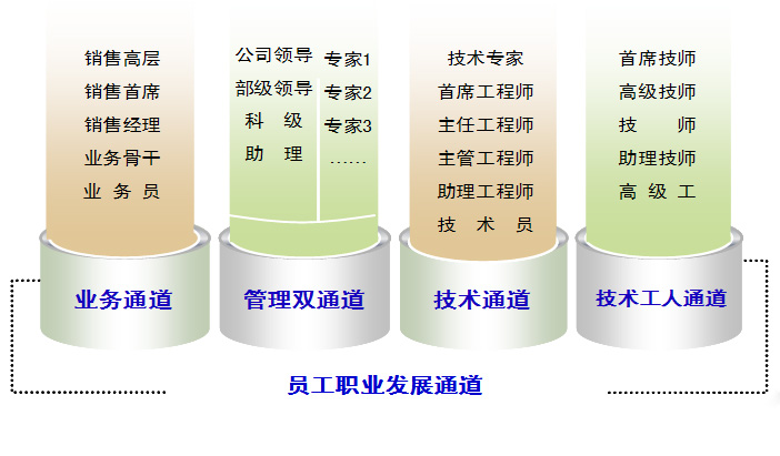 鼓勵(lì)、支持和引導(dǎo)員工努力提升專(zhuān)業(yè)技能,通過(guò)專(zhuān)業(yè)技能的提升實(shí)現(xiàn)職級(jí)的發(fā)展。專(zhuān)業(yè)技能的提升可通過(guò)以下幾種途徑:自我開(kāi)發(fā)學(xué)習(xí)、在職培訓(xùn)、企業(yè)內(nèi)訓(xùn)、送外脫產(chǎn)培訓(xùn)等。員工可根據(jù)自身的需要結(jié)合企業(yè)的實(shí)際情況選擇一種或多種途徑實(shí)現(xiàn)專(zhuān)業(yè)技能的提升。