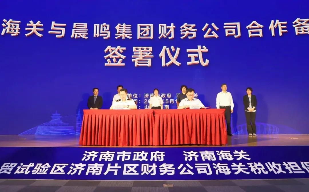 5月19日,濟(jì)南市政府、濟(jì)南海關(guān)支持山東自貿(mào)試驗區(qū)(濟(jì)南片區(qū))財務(wù)公司海關(guān)稅收擔(dān)保啟動儀式在浪潮科技園隆重舉行。會議由濟(jì)南市政府辦公廳黨組成員楊傳軍主持。會上,晨鳴紙業(yè)榮獲首批濟(jì)南海關(guān)企業(yè)集團(tuán)財務(wù)公司試點(diǎn)企業(yè)。財務(wù)公司董事長李棟代表晨鳴集團(tuán)與濟(jì)南海關(guān)簽署《濟(jì)南海關(guān) 山東晨鳴集團(tuán)財務(wù)有限公司關(guān)于參與稅收擔(dān)保改革試點(diǎn)助力濟(jì)南自貿(mào)區(qū)建設(shè)合作備忘錄》,晨鳴集團(tuán)總裁助理李康作為企業(yè)代表共同拍啟“企財?!甭涞刈再Q(mào)區(qū)的啟動球。
